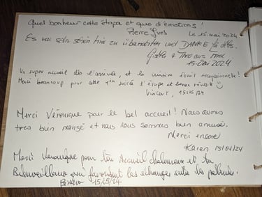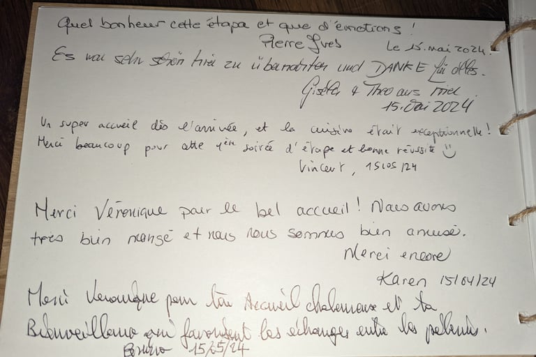 Hébergement adhérent à l'association « Les Haltes vers Compostelle ». Née en 2003, elle regroupe des hébergeurs dont la volonté est d’assurer un accueil chaleureux et personnel dans l’esprit du chemin, selon une charte qui met en évidence des conditions d’hébergement et des services adaptés aux pèlerins.